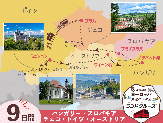 日本語現地係員が同行し、中欧の人気都市を周遊する充実ツアー!
