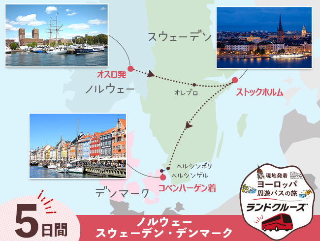 【ランドクルーズ】オスロ発 スカンジナビア3か国周遊 ノルウェー・スウェーデン・デンマーク  5日間【ID:2606878】