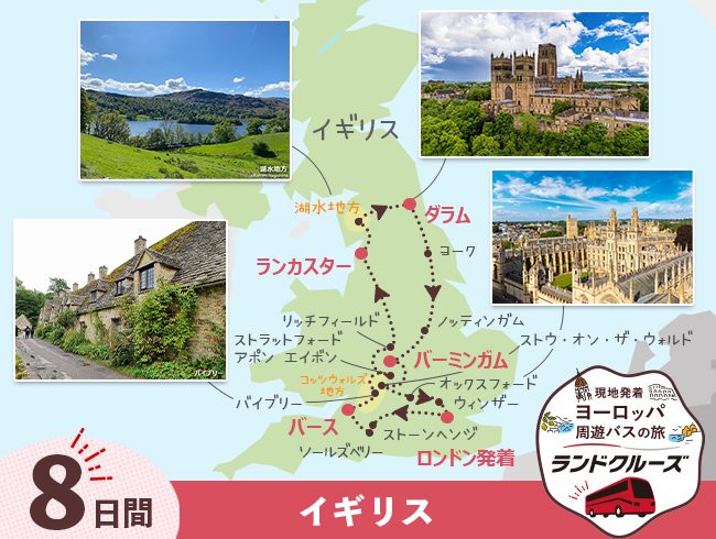 ロンドン市内はもちろん、ストーンヘンジ、ウィンダミア湖、コッツウォルズ地方など世界遺産や見所をしっかり網羅!
