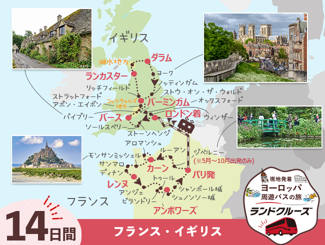 【ランドクルーズ】パリ発 パリ、モンサンミッシェルとロワールの古城巡り、 英国周遊 14 日間【ID:2608325】