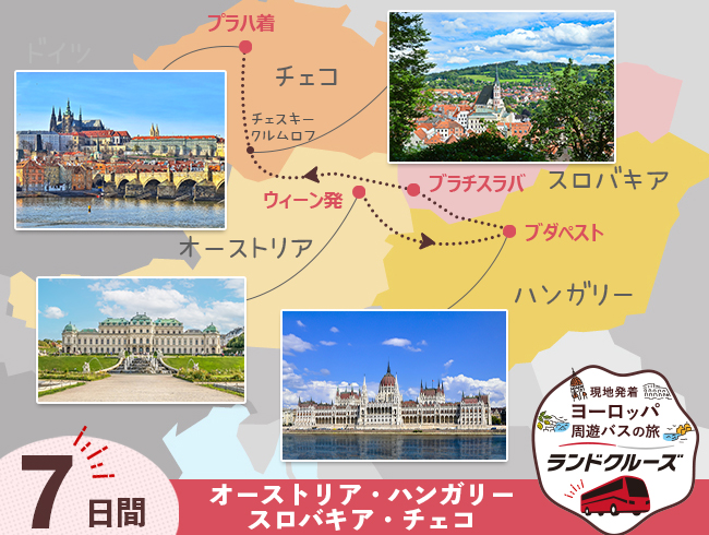 日本語現地係員が同行し、中欧の人気都市を周遊する充実ツアー!